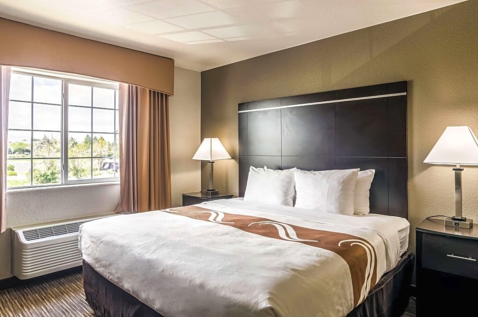 This suite provides a tea and coffee maker and a TV with cable channels.